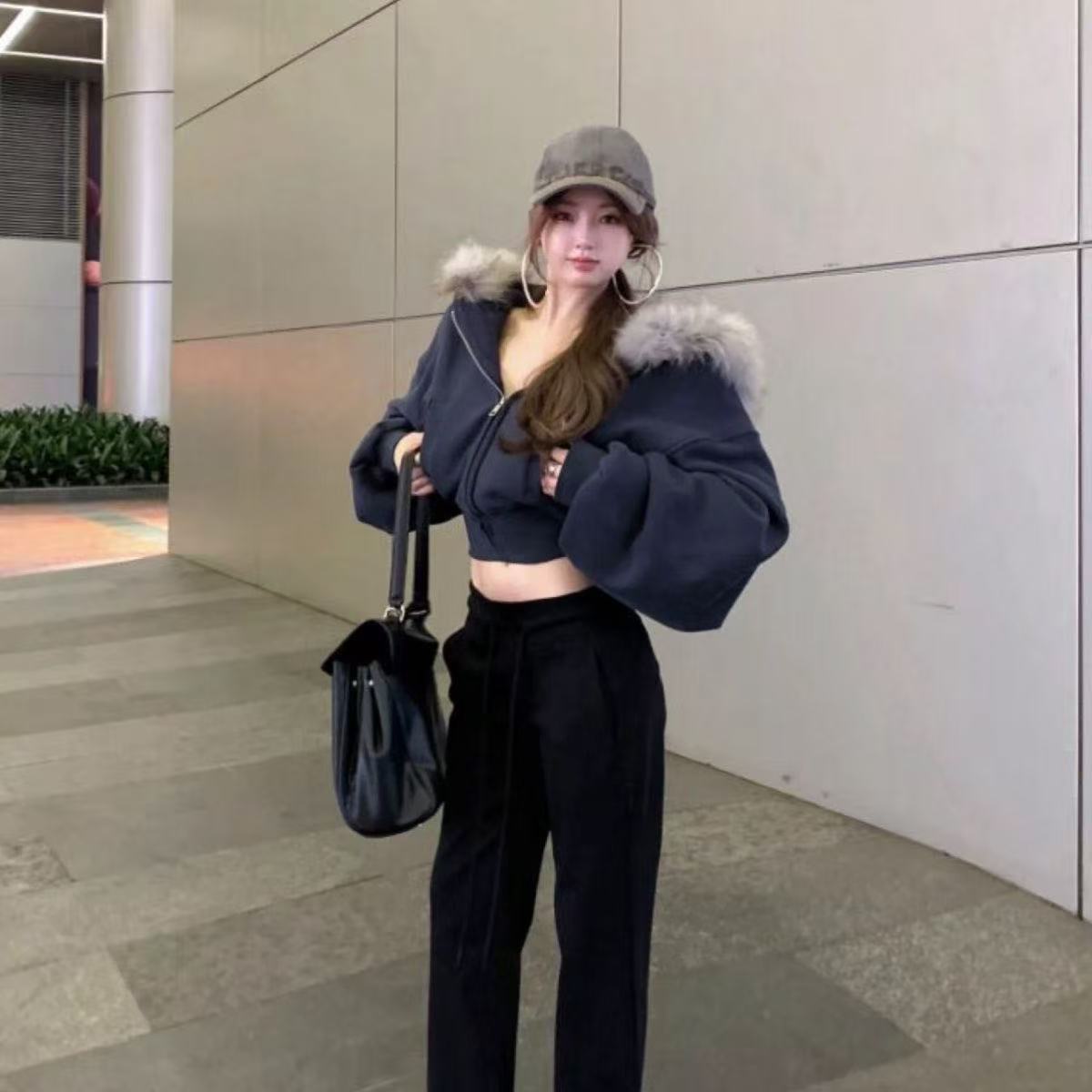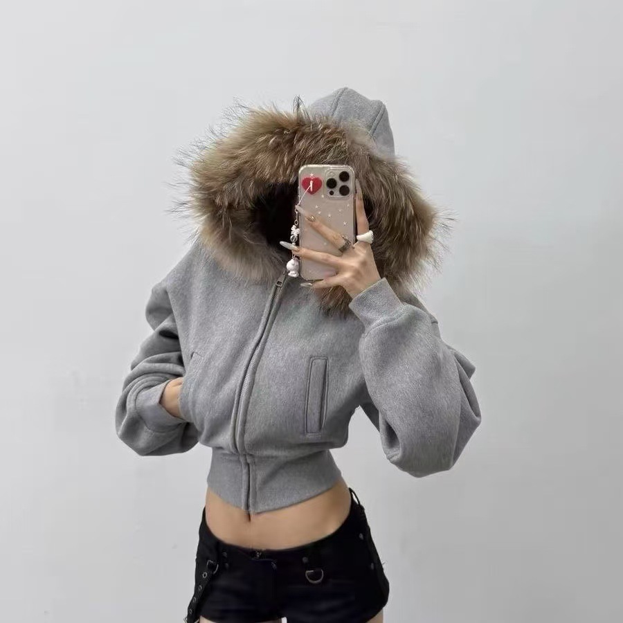American-style Hoodie With A Fur-lined Hood And A Zipper