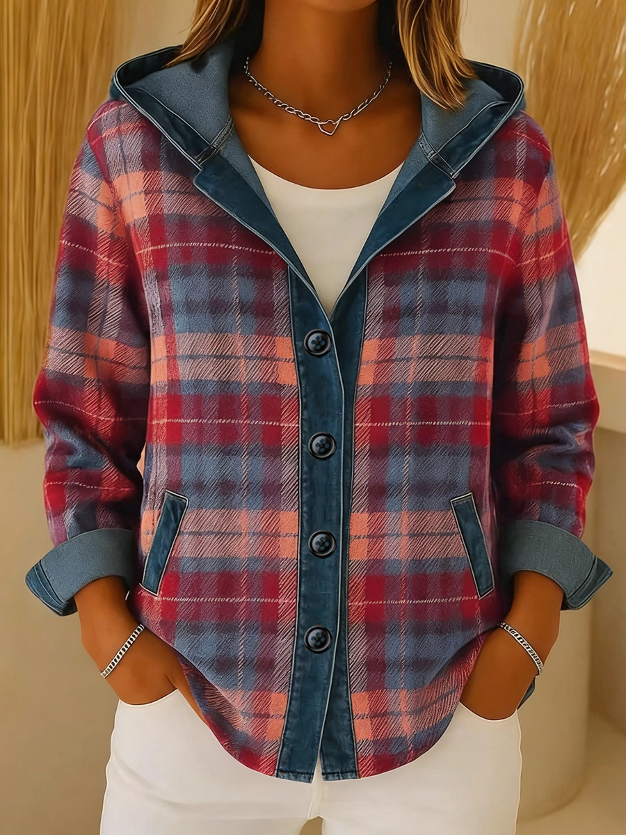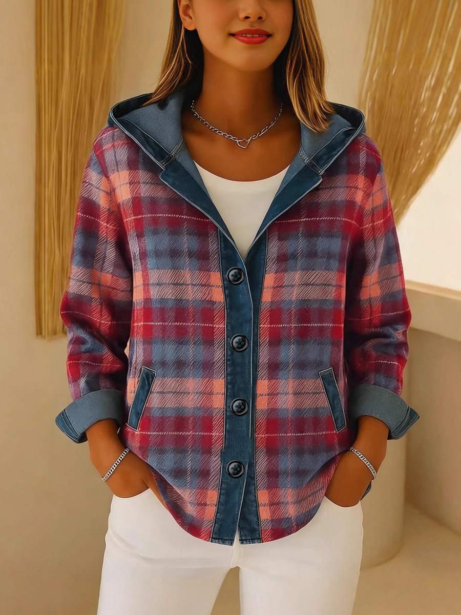 New Womens Trendy Plaid Contrast-color Jacket