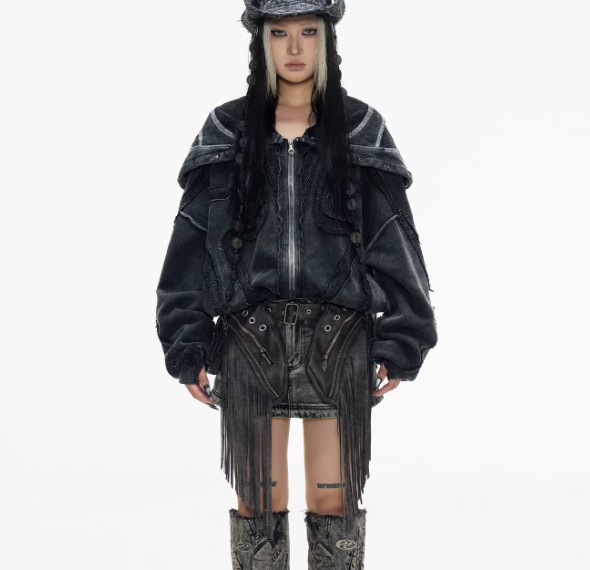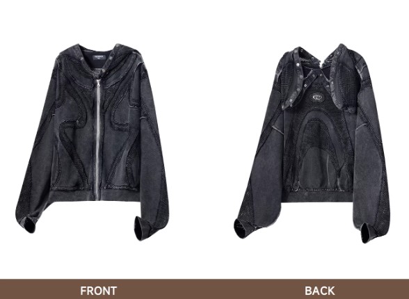 Split Deconstructed Dyed Hoodie With A Zip-up Hood