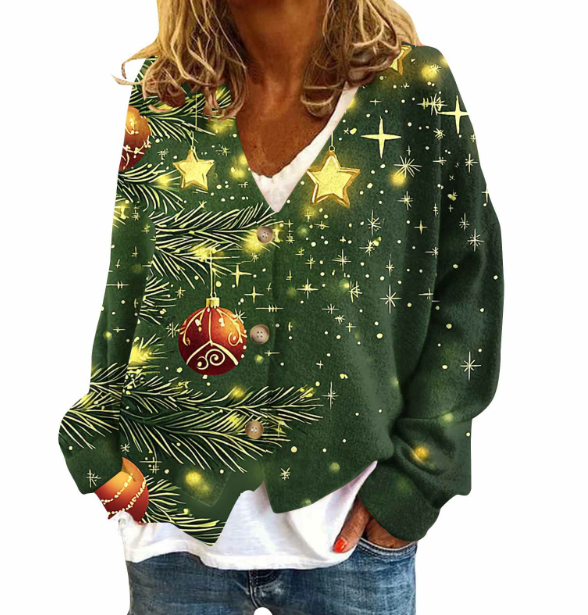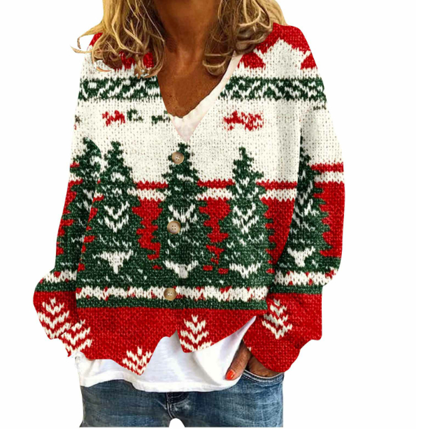 Womens Casual Versatile V-neck Long-sleeve Loose-fit Sweater Jacket