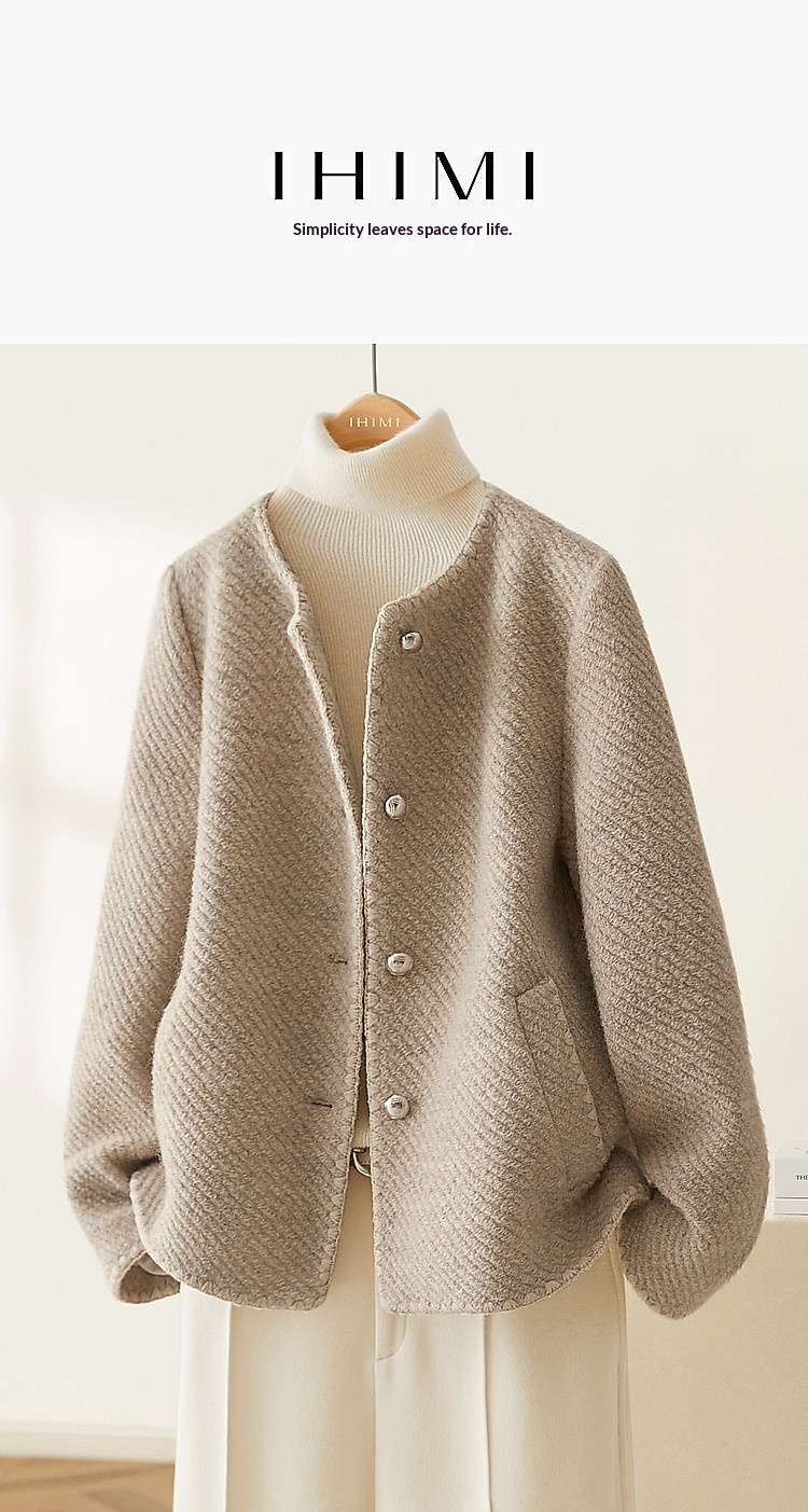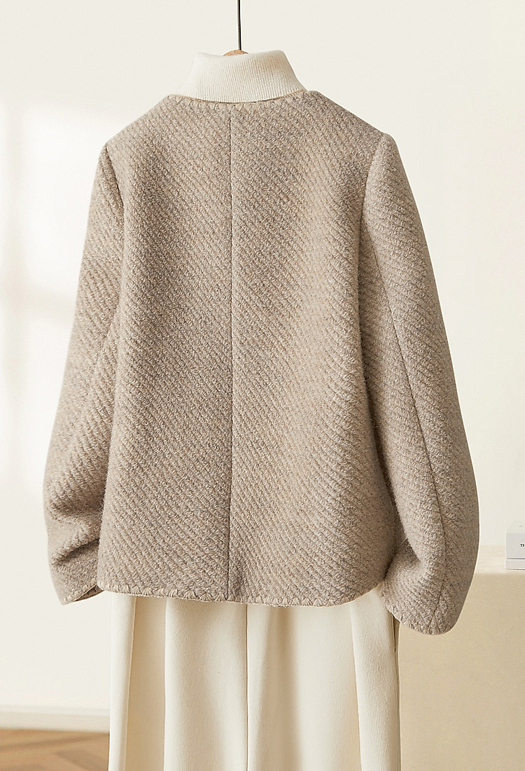 Womens Luxurious Shell-Sleeve Minimalist Wool Coat