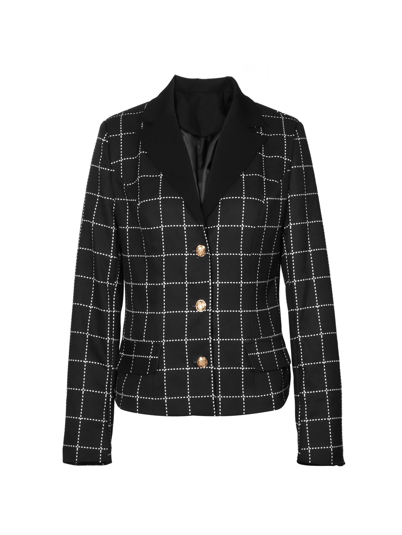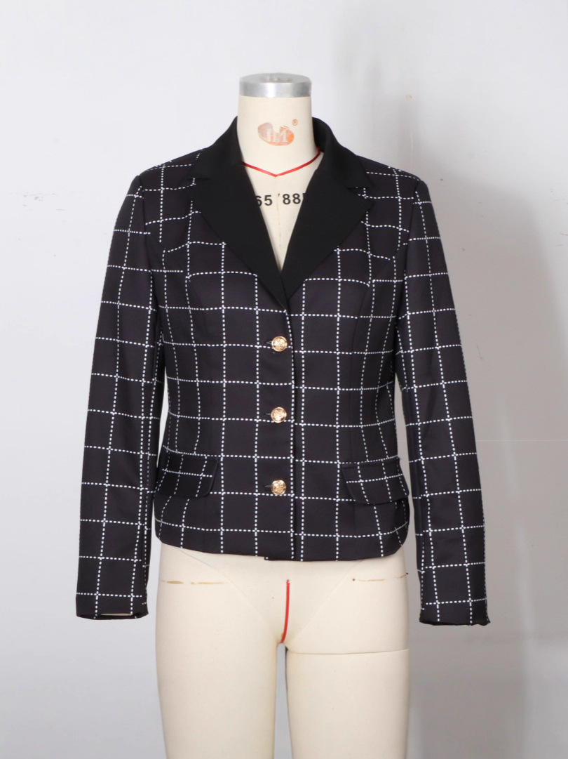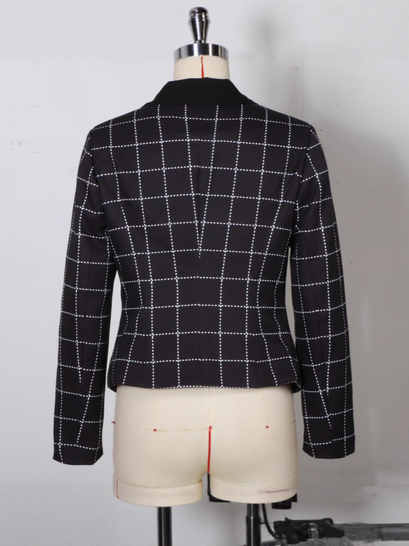 Womens Slim-Fit Casual Long-Sleeve Houndstooth Jacket